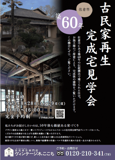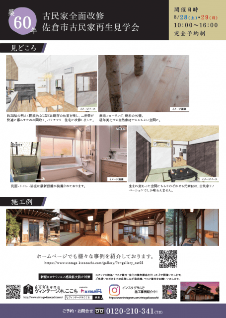 8/28(土)29(日) 完全予約制・古民家再生完成宅見学会 in 佐倉